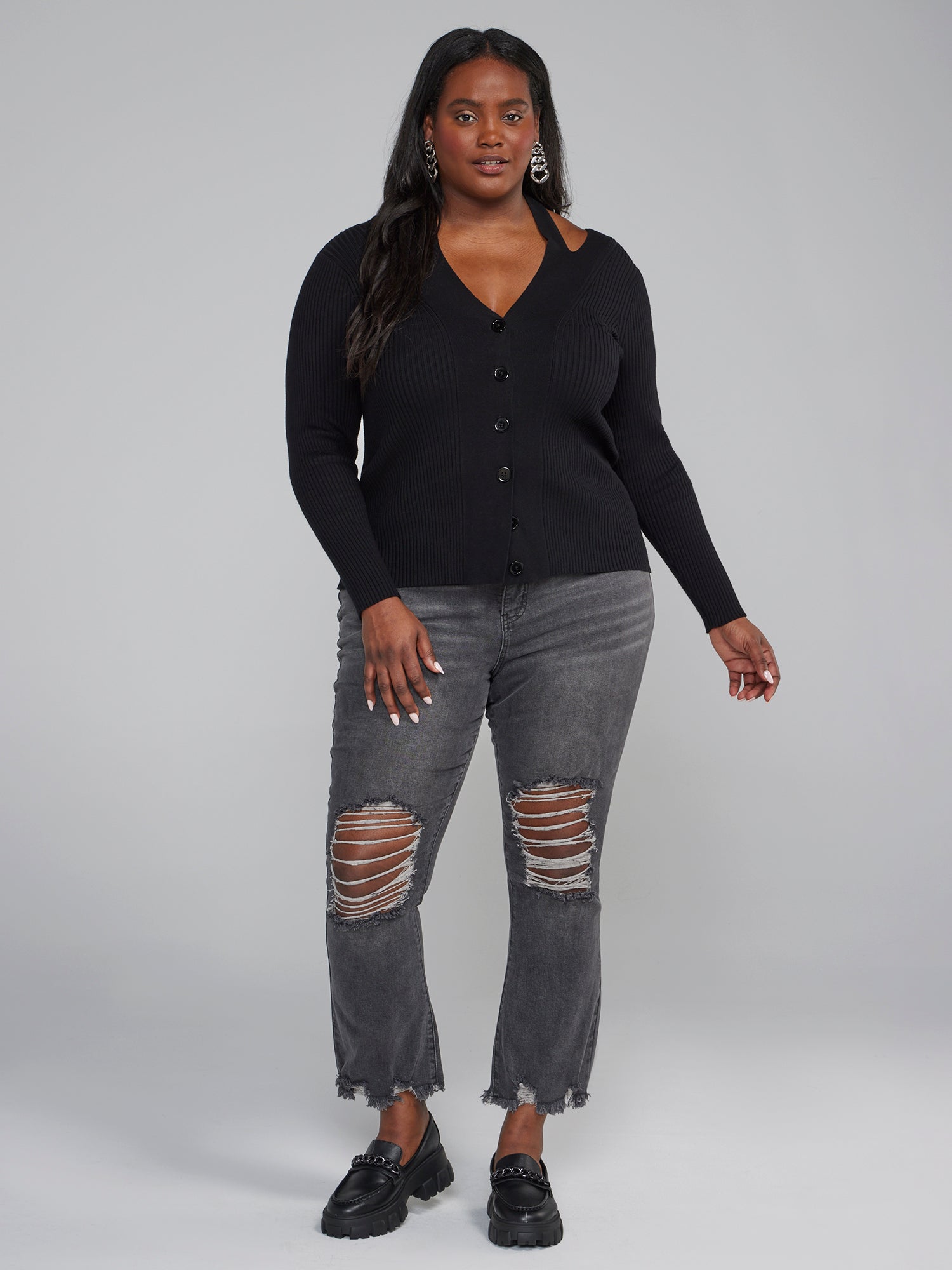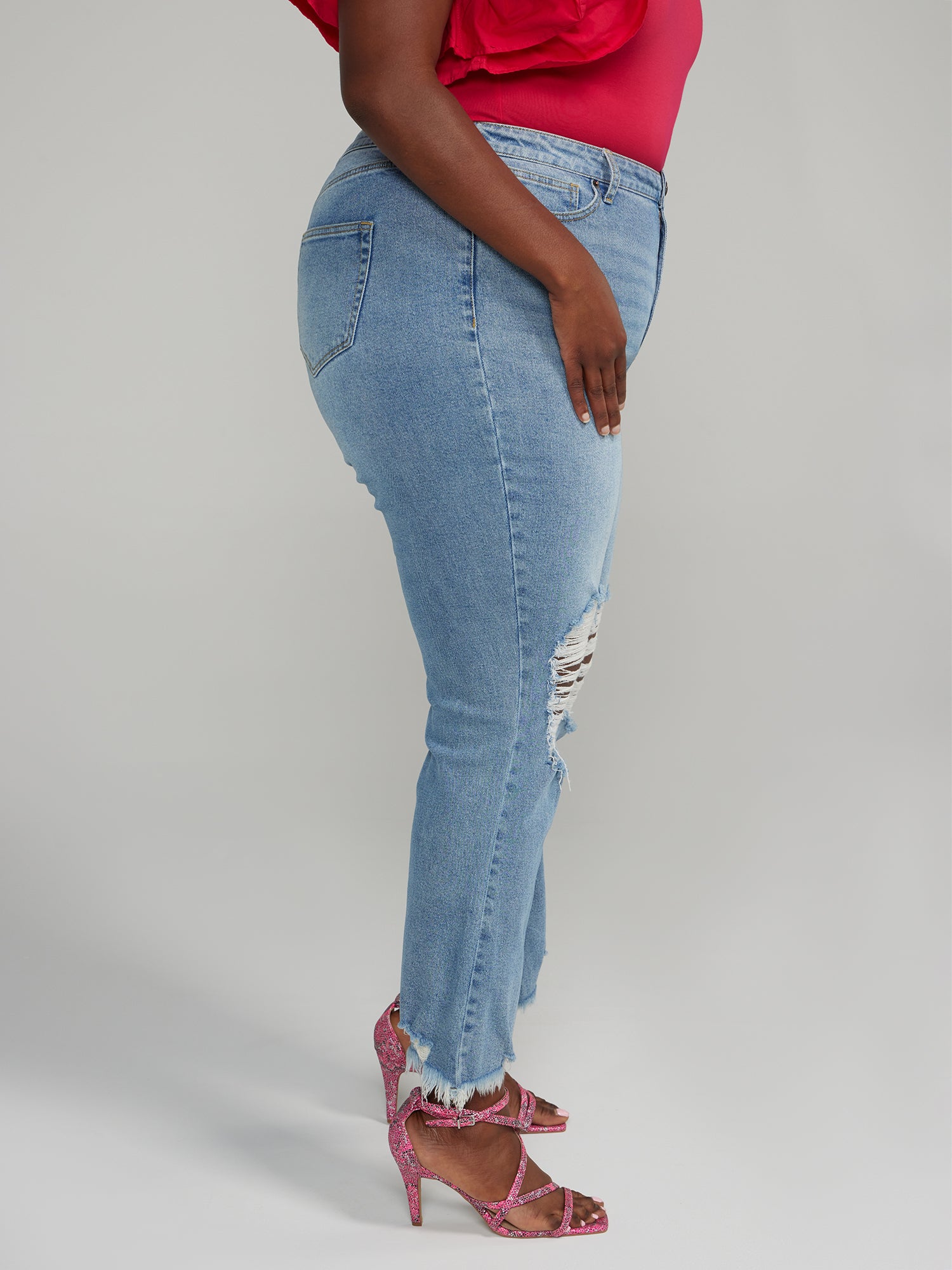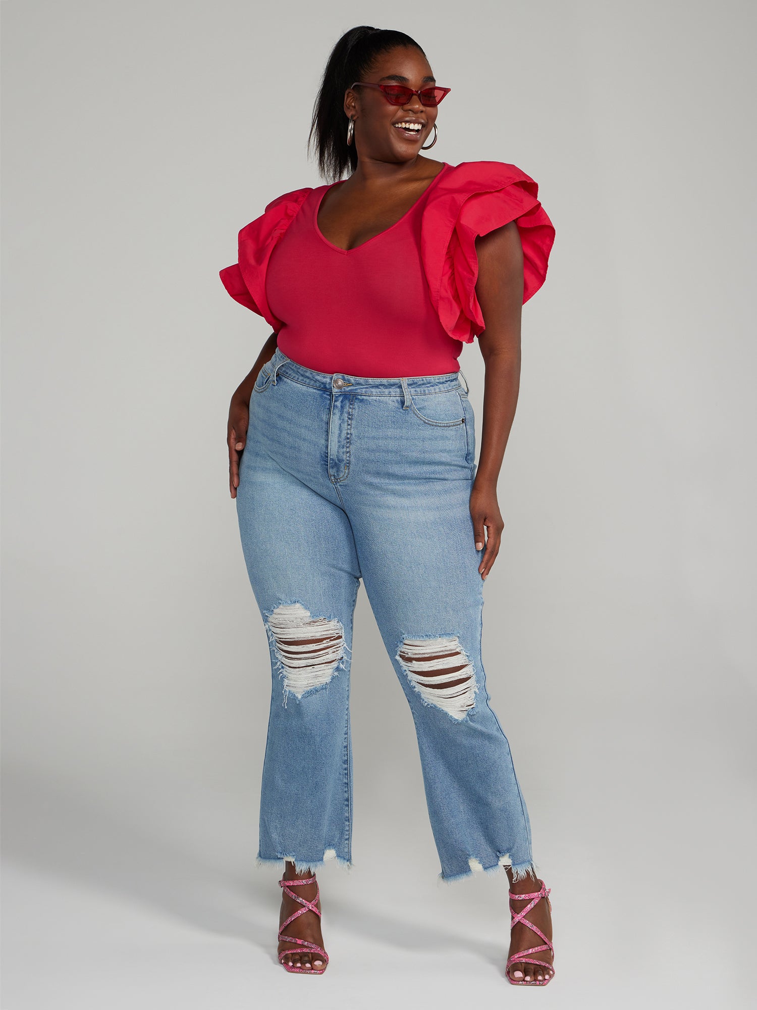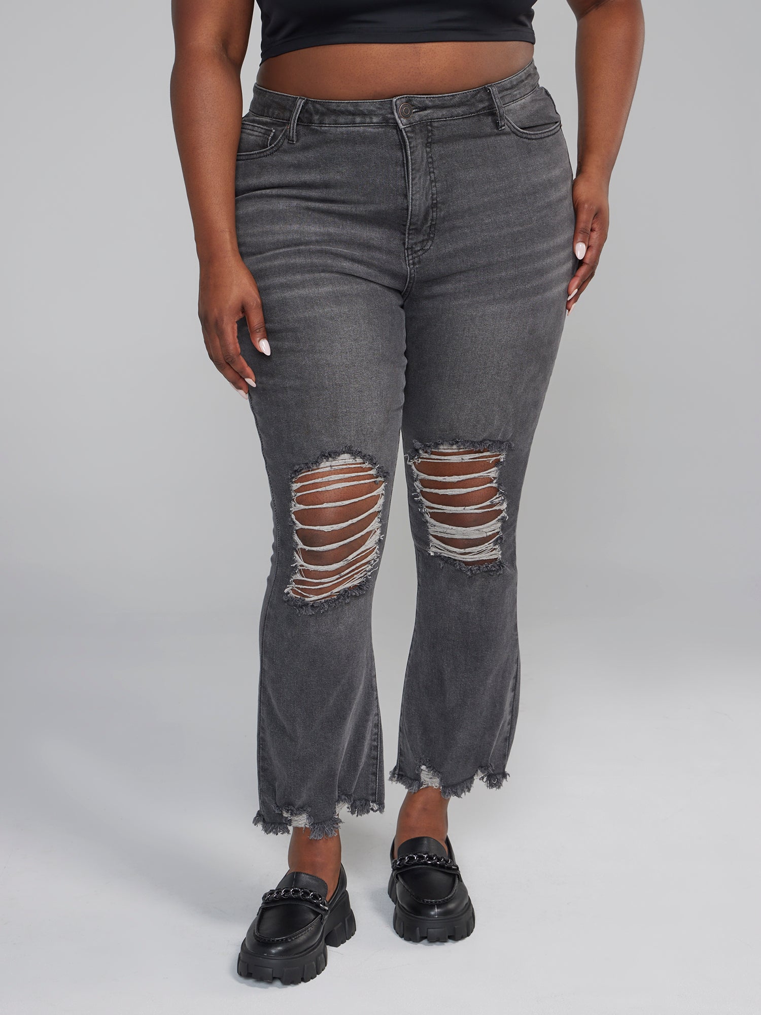 High Rise Destructed Flare Jeans