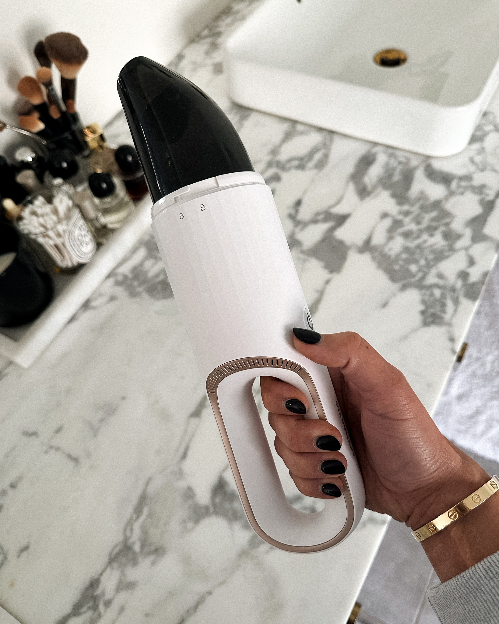 Sometimes you need a tiny vacuum for the smaller spaces in your house. Example: when you finally clear out your bathroom drawers and organize them the right way, you want to get into all the small crevices within the drawer and can’t exactly do that with a full-size vacuum! This little guy works really hard and comes in so handy in ways you never thought. I used it to clean out my own bathroom drawers during my latest organizational kick—see it in action here!