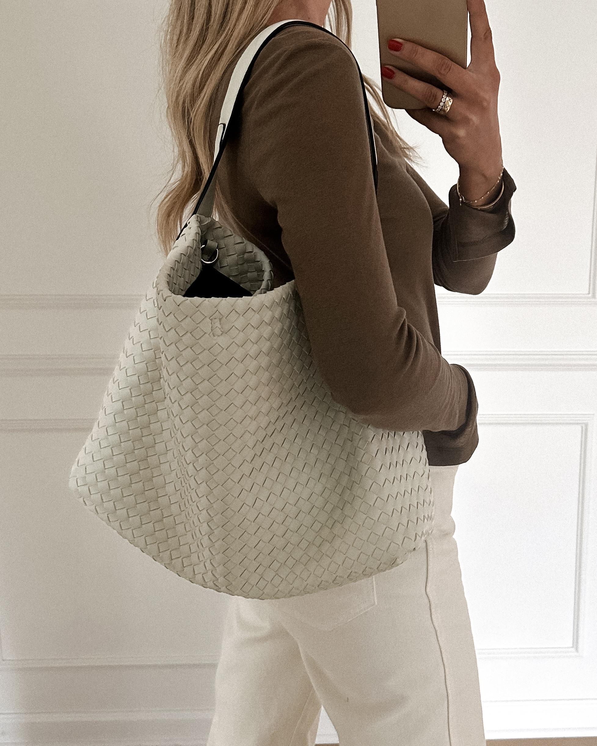 This woven vegan leather handbag from Amazon is perfect! I have it in the off white color and love that you can wear it on your shoulder or connect the strap and wear it crossbody if that’s more your vibe. Either way, it’s a great bag and I can’t recommend it enough!