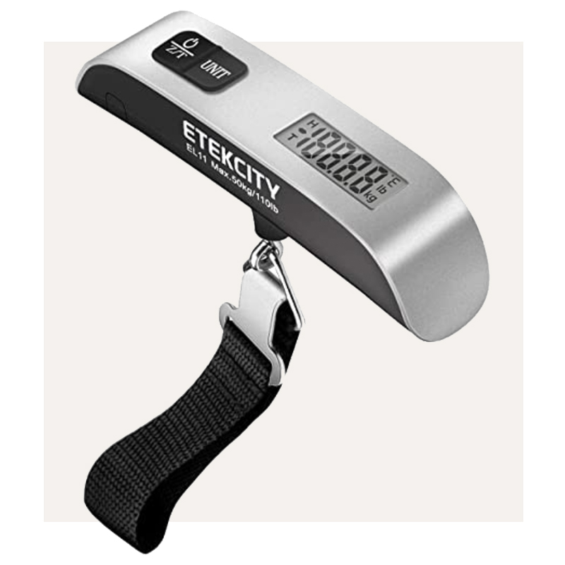 The absolute worst thing that no traveler needs is waiting until you get to the airport to find out that your bag is overweight. The awkward shuffle of things from suitcase to suitcase at the ticket counter is stressful, but finding this luggage scale was game changing for me. It’s incredibly easy to use and will save you money and time!