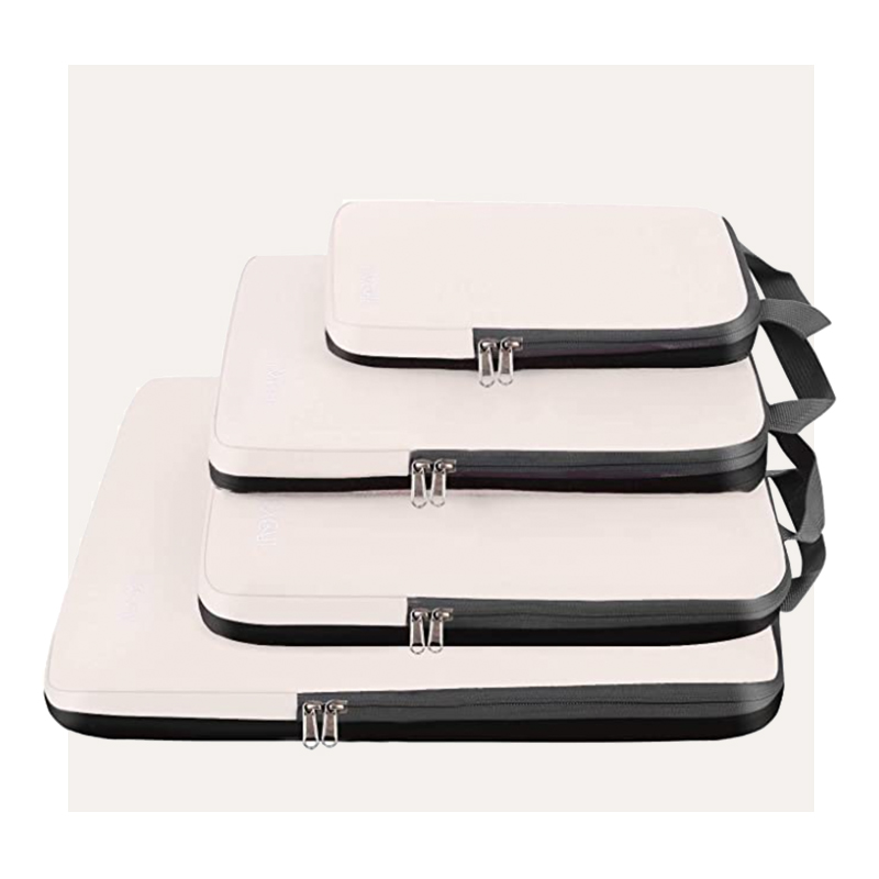 If you haven’t tried packing cubes yet, this is your sign. The reason they’re so wonderful is because they can hold so many clothes and compress down so they take up way less space in your suitcase. With packing cubes, you can take so much more on your trips and it will all be super organized so you’re not digging through loose clothes! These are my favorite, and I especially love the beige color.