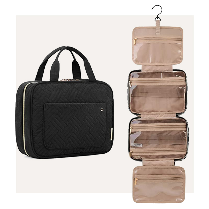 Ah, the hanging toiletry case. I love this as a toiletry organizer alternative because it keeps all my makeup products and brushes super organized and well protected. The design is well-padded so the bag’s shape remains in mint condition while providing great protection overall.