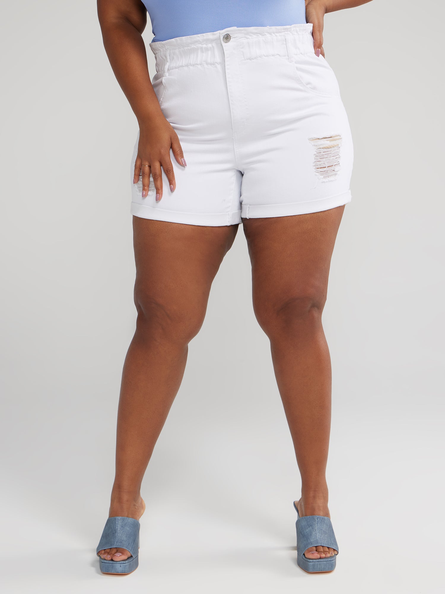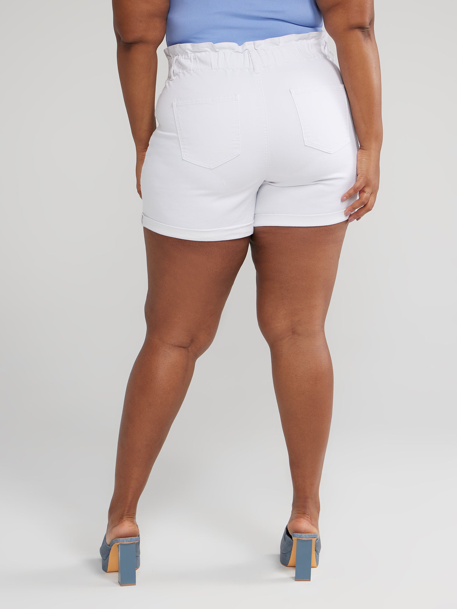 Cinched Waist Cuffed Denim Shorts