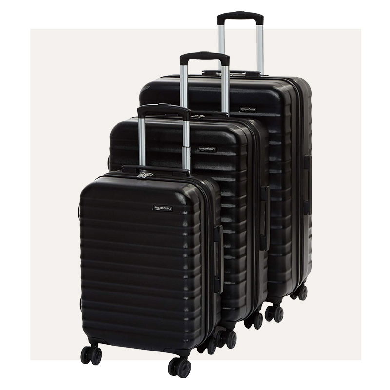 This 3-piece Amazon suitcase set is incredibly affordable, but looks and operates like a million bucks! The set comes with three sizes: 21” carry-on, 26” checked bag, and a 30” checked bag for those super long trips. The wheels have 360º spin ability, the handles on all three do not get stuck, and each piece is super lightweight. Trust me—you need this set.